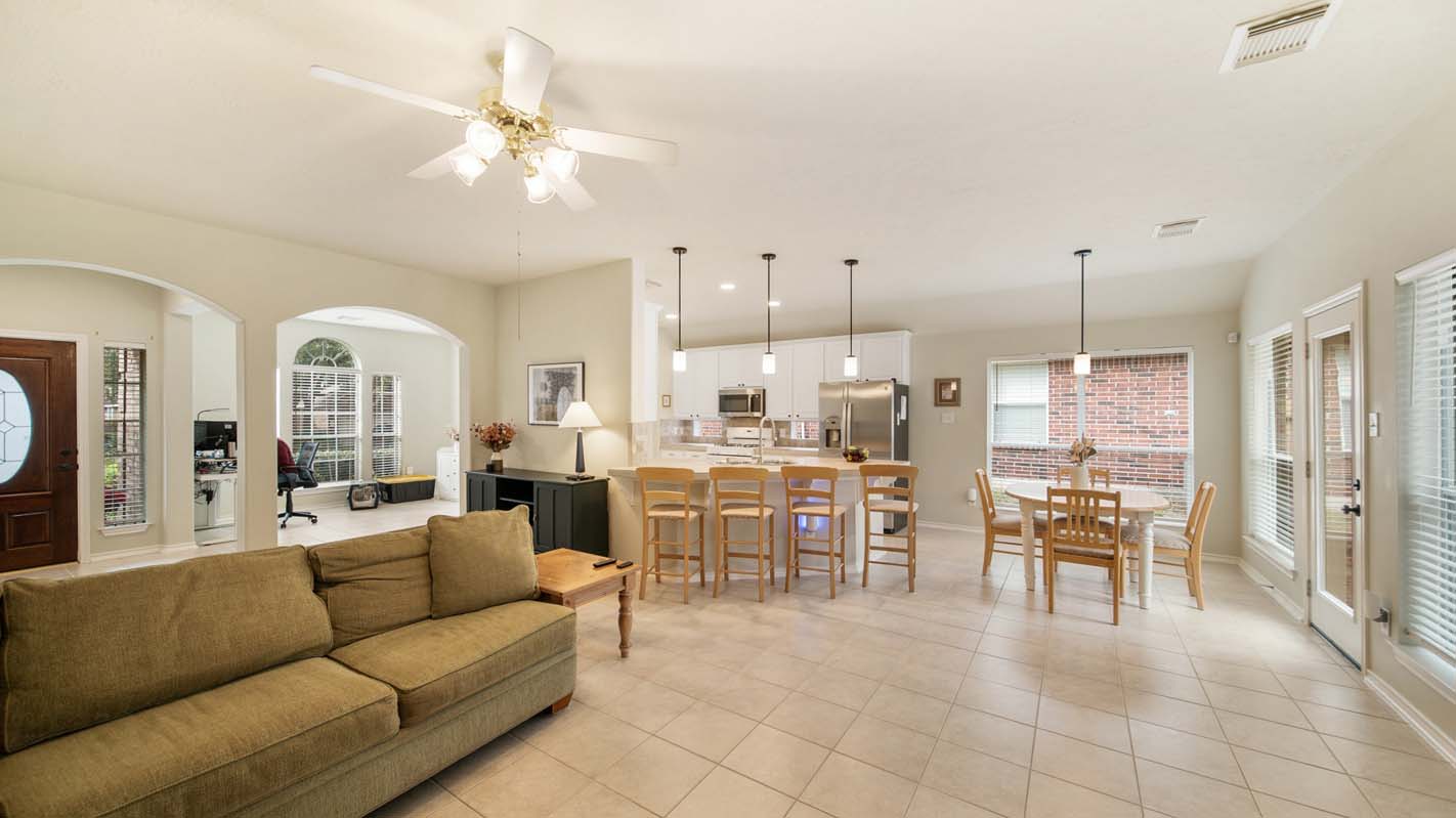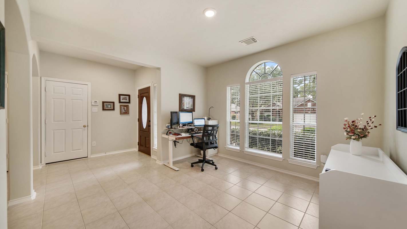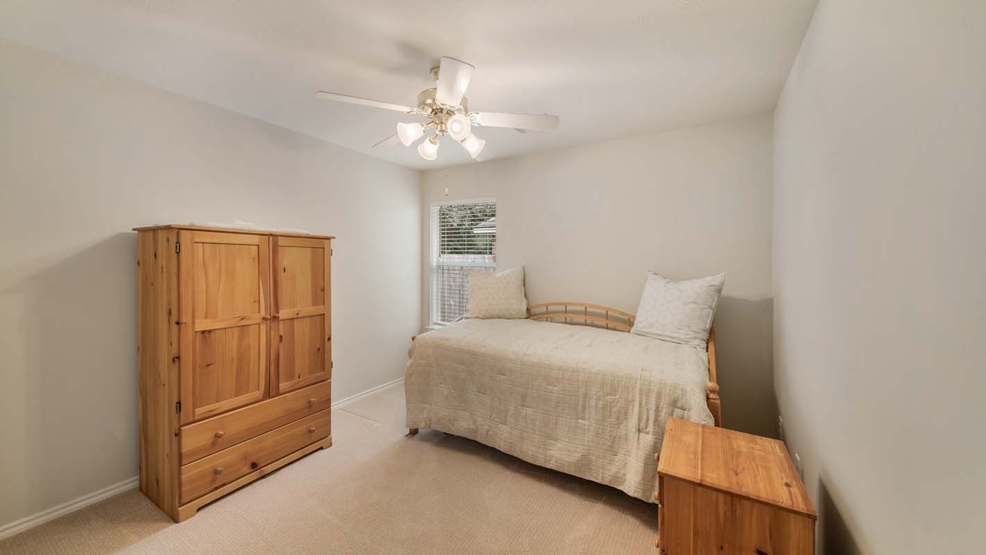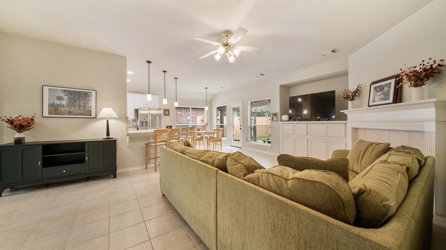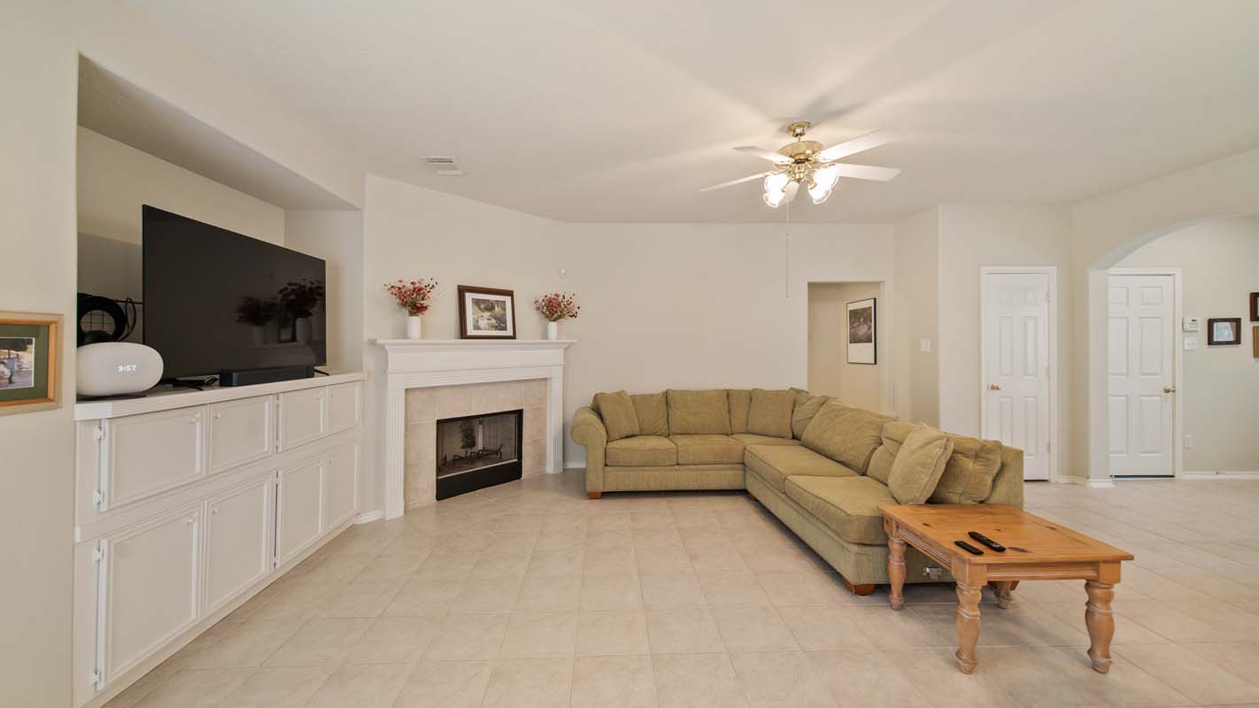 Immaculate 3-bedroom brick home in Alden Bridge! Off the entry, a versatile space is perfect for a formal dining or a study. The open-concept design includes a family room with fireplace and built-ins, plus a spacious kitchen offering gas range, ample cabinets, tile countertops, breakfast bar, and a bright breakfast area. The primary suite is a true haven, with a separate space perfect for a private study, craft space or sitting room; two walk-in closets, and an ensuite bath featuring a jetted tub and separate shower complete the space. Two additional bedrooms, with a shared full bath. Tile floors flow through the main living areas, with carpet in bedrooms. Enjoy a fully fenced private backyard, patio with arbor, and a 2-car garage. Excellent location near shopping, dining, entertainment, and easy freeway access.
